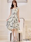 - > XS-Lサイズあり 【GINZA COUTURE/銀座クチュール】ニュアンス柄/ ペイント柄/ 肩リボン/ ノースリーブ/ 膝丈/ ミディアム丈/ フレア/ ワンピース/ キャバドレス[OF2]