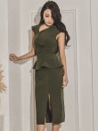 XSサイズあり【Veautt/ヴュート】【OF05】フリル/ ペプラム/ ワンカラー/ タイト/ ひざ丈/ ミディアムドレス/ キャバドレス