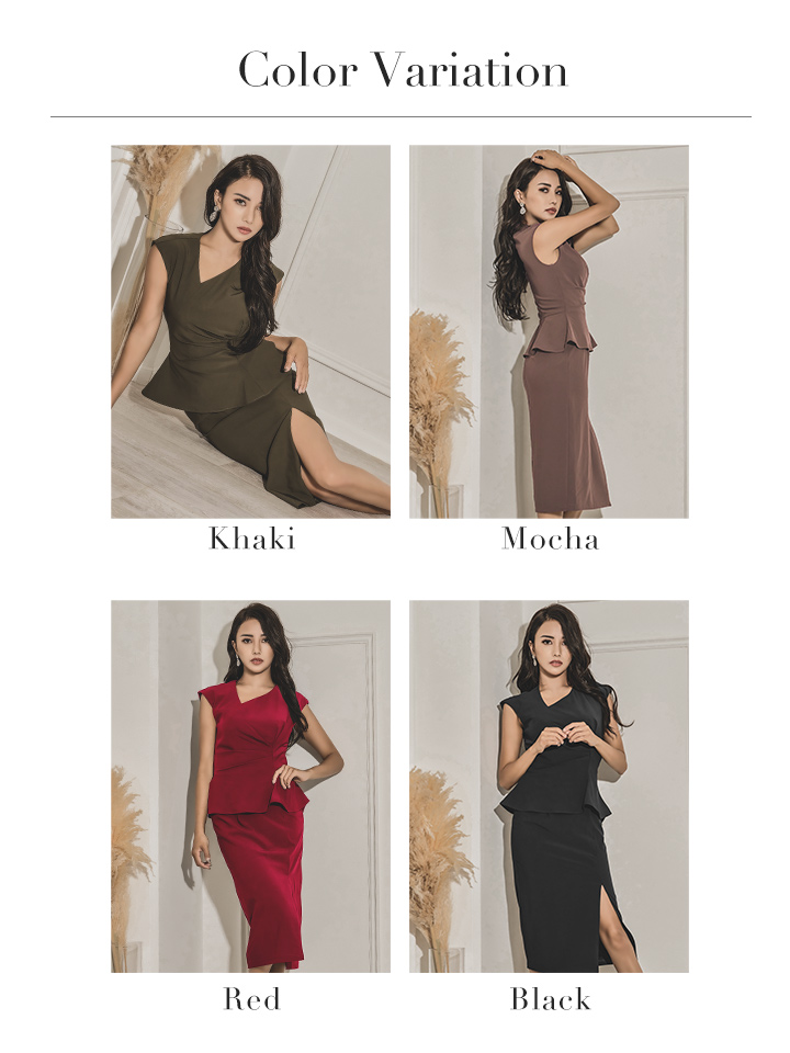 ペプラムデザインがウエストの細見え効果も期待出来き、大人女性らしいシルエットに仕上がった心擽る一着。