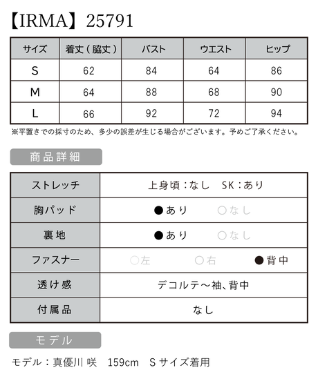B:84 / W:64 / H:86 [着丈]約62cm |