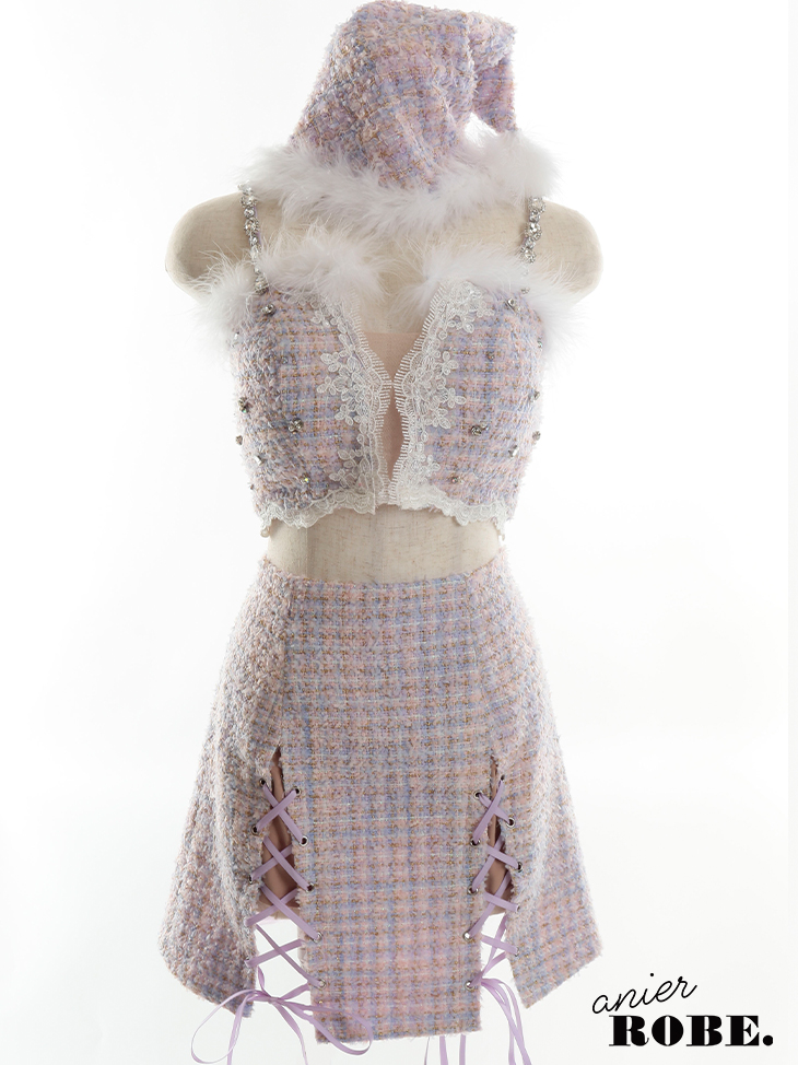 【即日発送】XSサイズあり【ANIER./アニエル】【ROBE de FLEURS/ローブドフルール】ツイード/ ツーピース/ 2ピース/ セットアップ/ サンタ/ クリスマス/ ミニドレス/ キャバドレス[帽子付き・胸元のファー取り外し可能][OF08]