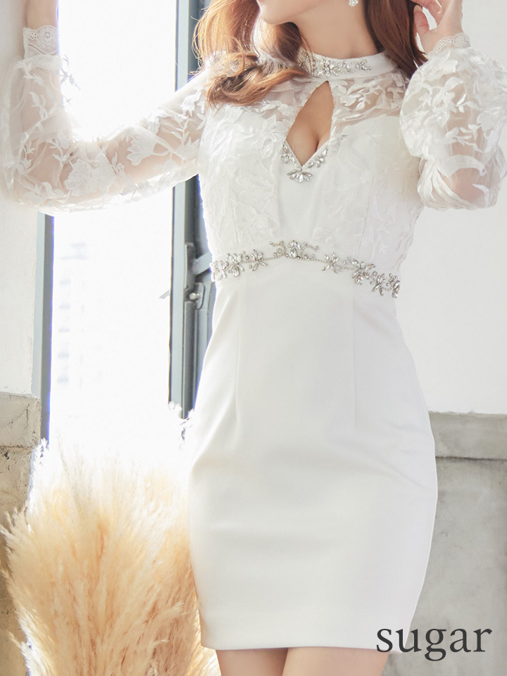 Lサイズあり☆【IRMA/イルマ】長袖/ 袖あり/ パフスリーブ/ レース/ 刺繍/ カットアウト/ ビジュー/ タイト/ ミニドレス/ キャバドレス【HC02】 [25791-IR-W-S221129]