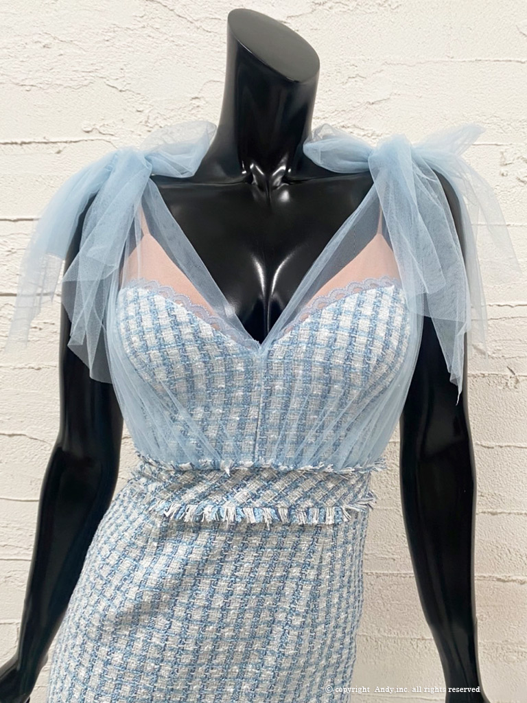 【an /アン】マーメイド/ チュール/ ショルダーリボン/ テールカット/ ツイード/ キャバドレス[OF05] [AOC3349-BL-S230104]