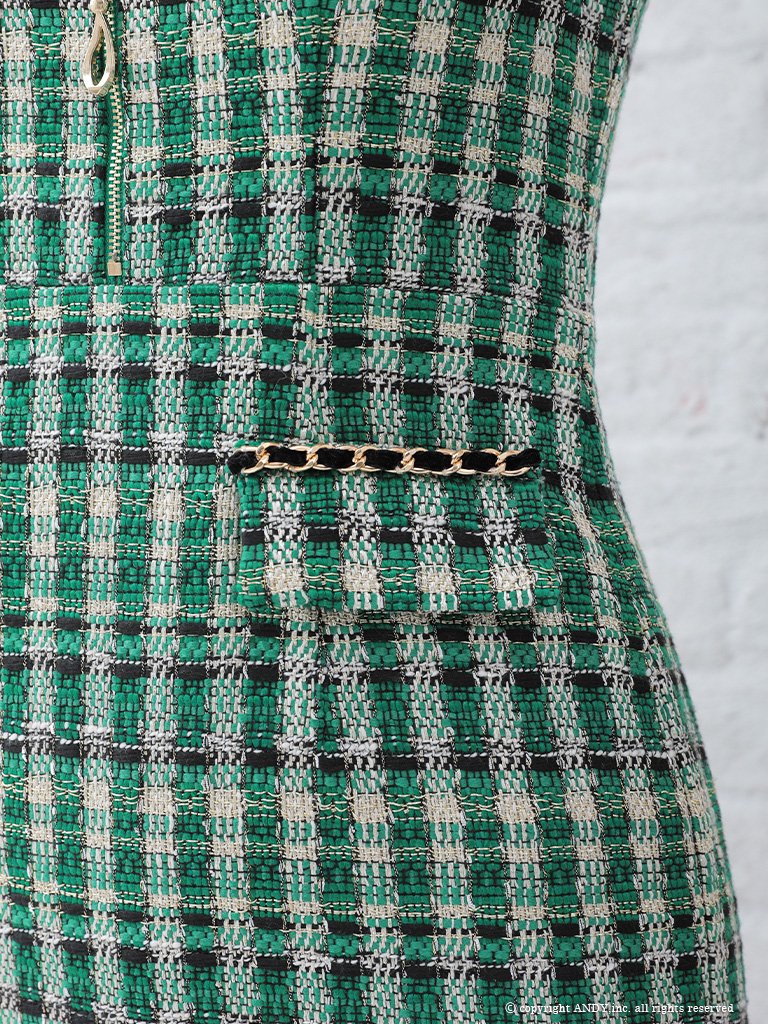 【an/アン】クラシカルなチェックツイードが大人可愛いミニワンピースドレス