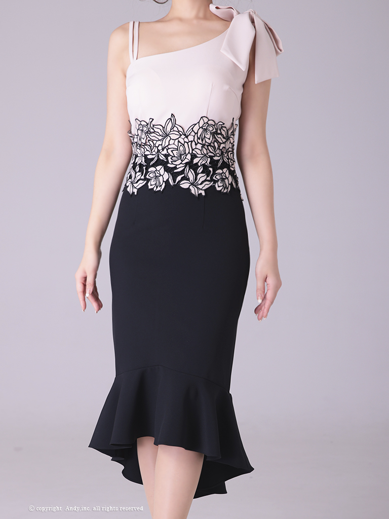【ANDY/アンディ】マーメイド/ショルダーリボン/ バイカラー/ ノースリーブ/ 裾フリル/ テールカット/ ミディアム丈/ キャバドレス[FB03]