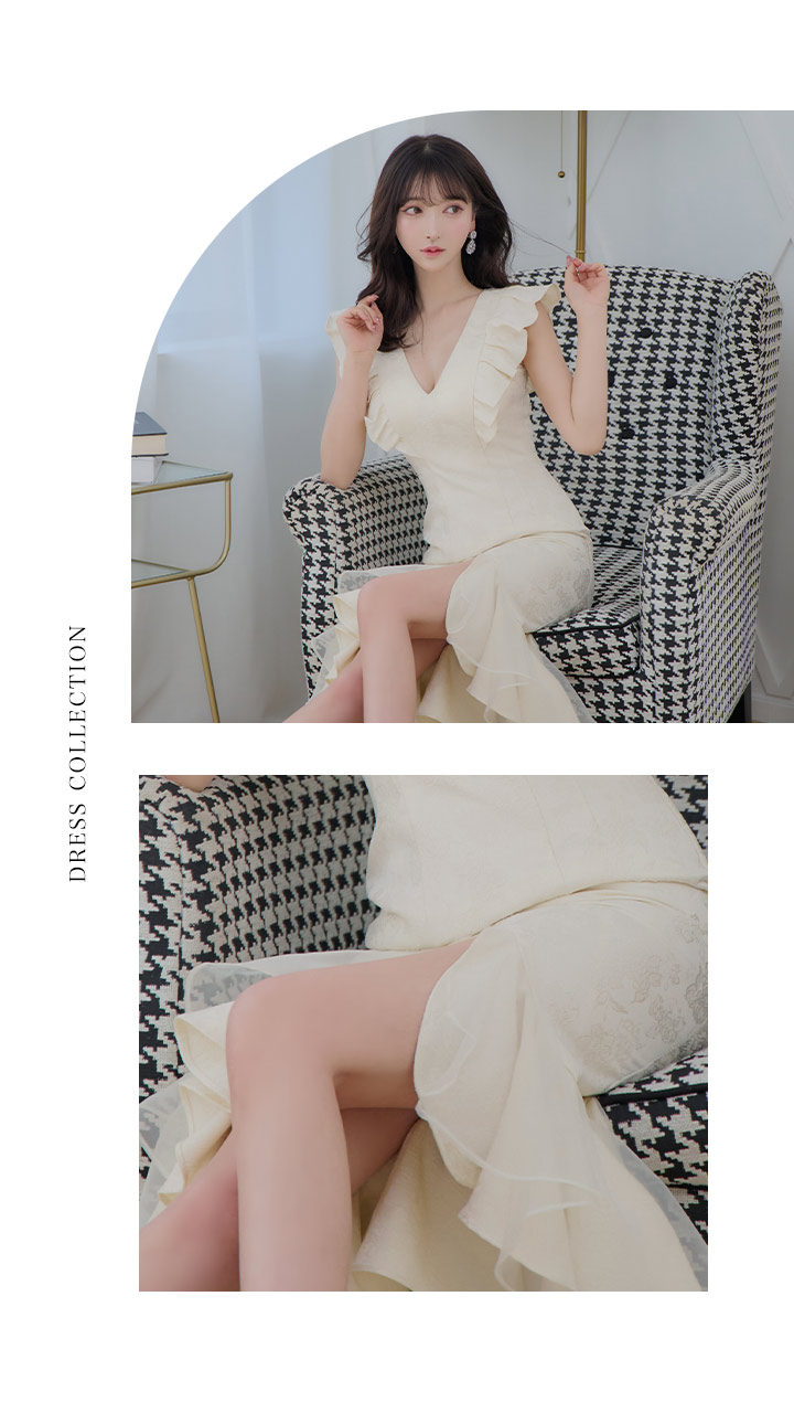 Lサイズあり【DEA./ディア】マーメイド/ フリル/ バストカット/ ワンピース/ ミディアムドレス/ キャバドレス【OF08】 [DE2459-IV-S230125]