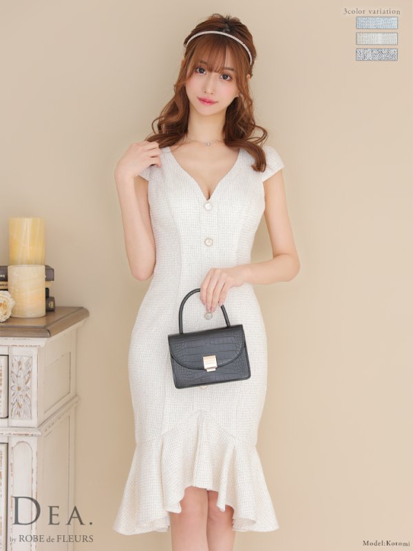 Lサイズあり【DEA./ディア】ラメ入りスプリングツイード/ マーメイド/ タイト/ ミディアム丈/ ワンピース/ キャバドレス【OF08】 [DE2830-IV-2301]
