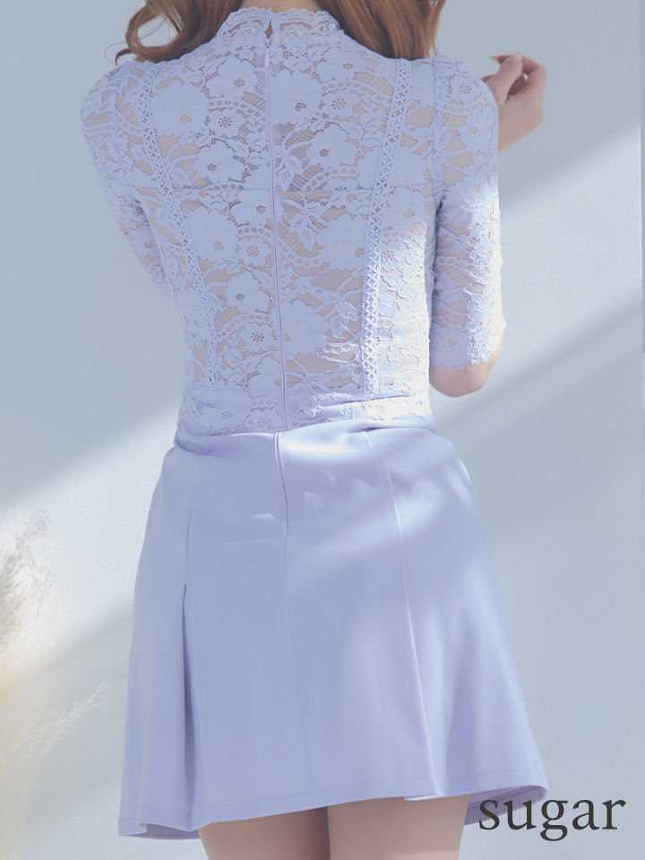 - > 【an/アン】バストカット/ 五分袖/ 長袖/ 袖あり/ レース切り替え/ ハイネック/ ボタン/ プリーツ/ Aライン/ ミニドレス/ キャバドレス[OF05]