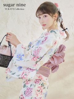 【即日発送】ベージュ地×水仙の花浴衣 【浴衣3点セット 浴衣/帯/下駄】[YMT]