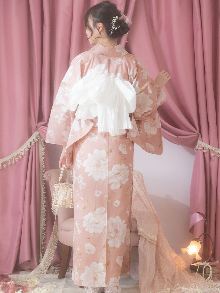 【即日発送】【浴衣】くすみピンク地のホワイト牡丹浴衣 【浴衣3点セット 浴衣/帯/下駄】[OF04] [Y-7032-kj-P-F-23lar]