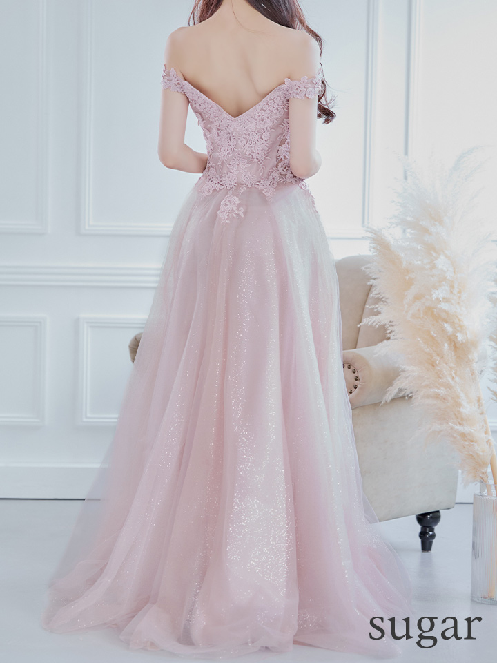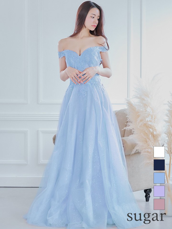 【Lip line/リップライン】オフショル/ ハートカット/ ラメ/ 刺繍レース/ チュール/ プリンセス/ フレア/ Aライン/ ロングドレス/ キャバドレス long[HC03]