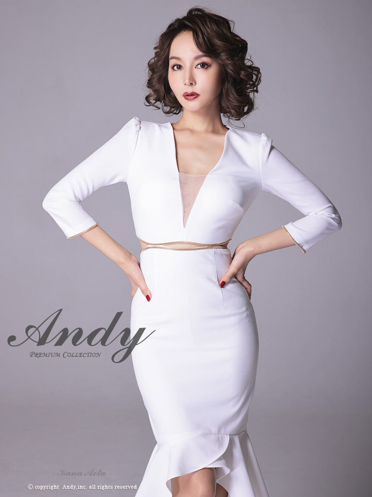 - > 【ANDY/アンディ】マーメイド/ 七分袖/ 長袖/ 袖あり/ カットアウト/ ワンカラー/ テールカット/ フリル/ ミディアム/ キャバドレス[OF05]