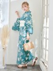 【即日発送】【浴衣】アクアブルー椿浴衣 【浴衣3点セット 浴衣/帯/下駄】[YMT] [Y-7116-wk-BL-F-23PY]