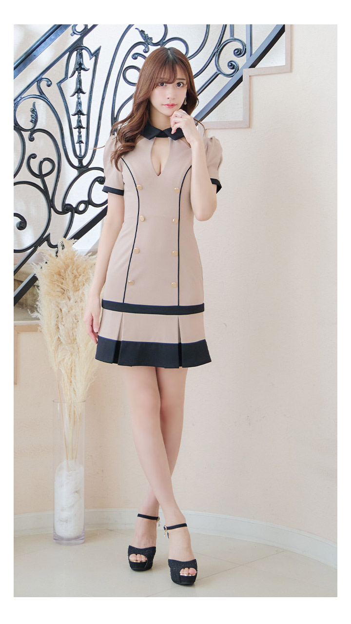 襟付きxゴールドボタンがクラシカルなバイカラーミニドレス