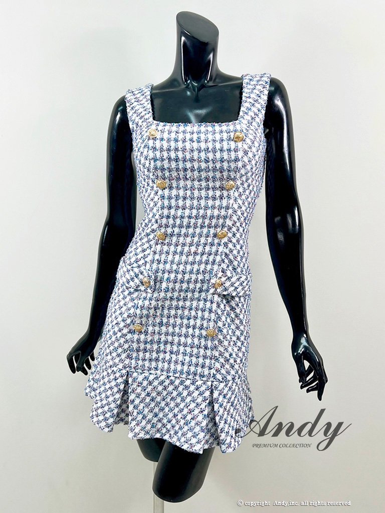 門りょうちゃん着用【ANDY/アンディ】ツイード/ ボタンデザイン/ ノースリーブ/ プリーツ/ ワンピース/ ミニドレス/ キャバドレス[OF05]