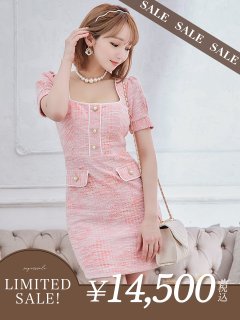 【LIMITED SALE開催中!! 11月11日より順次発送予定】【an/アン】ストレッチ/ ツイード/ フロントボタン/ 半袖/ 袖あり/ タイト/ ミニドレス/ キャバドレス[OF05]