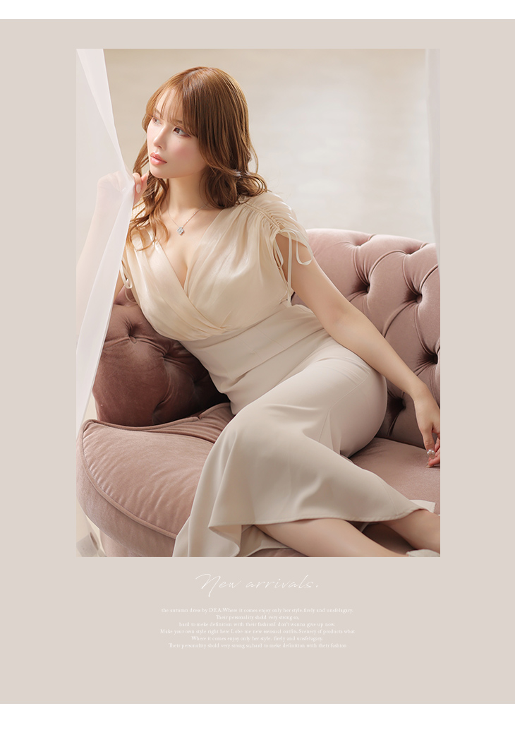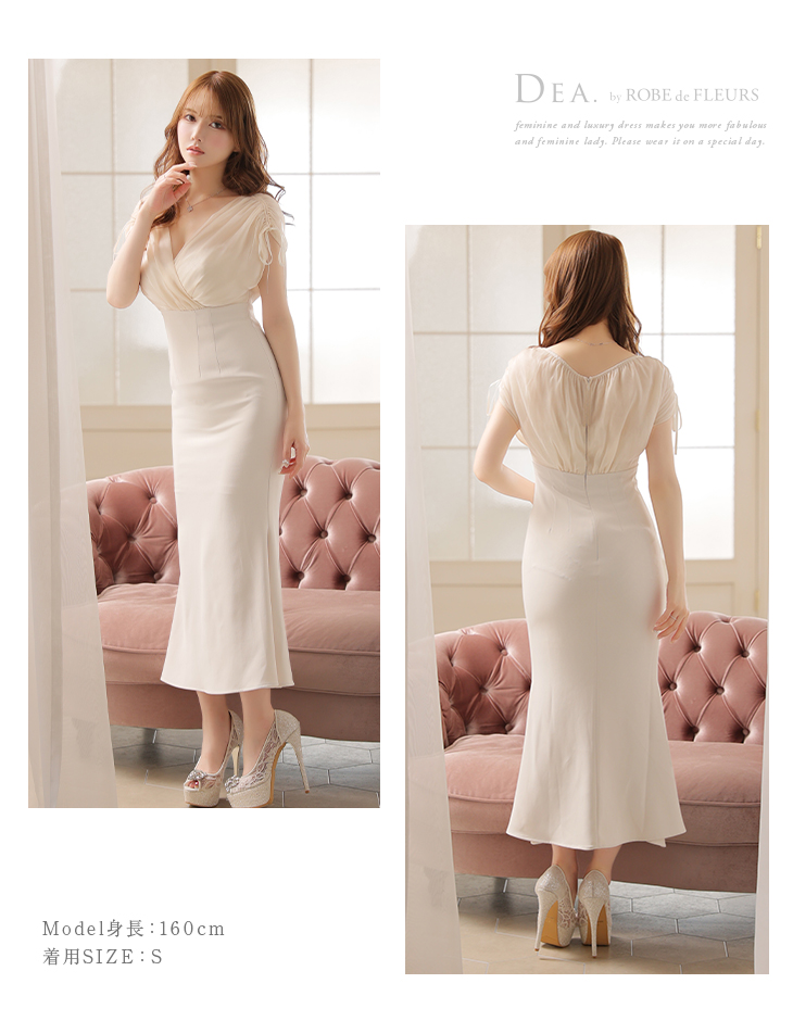 Lサイズあり【DEA./ディア】オーガンジー/ クラシカル/ ワンカラー/ ミモレ丈/ マーメイド/ ワンピース/ ロングドレス/ キャバドレス long[OF08] [DE2952-P-2307]