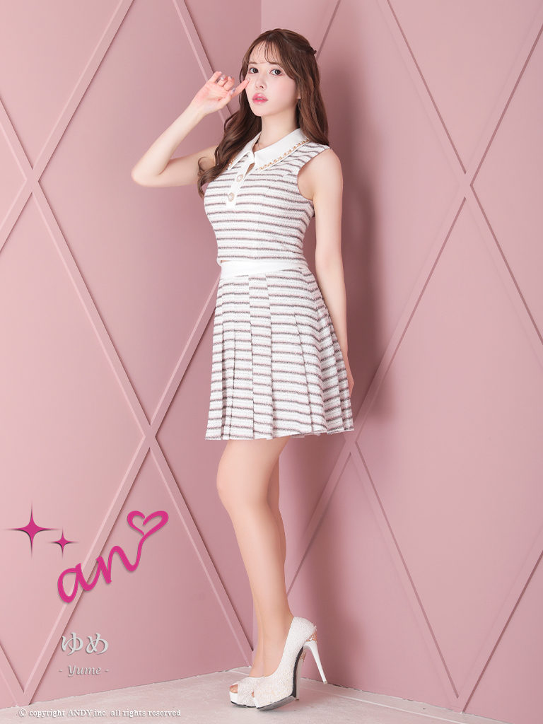 XSサイズあり【an/アン】ストレッチ/ ツイード/ 襟付き/ ボタン/ Aライン/ プリーツ/ セットアップ/ ミニドレス/ キャバドレス[OF05] [AOC3485-WP-S230718]