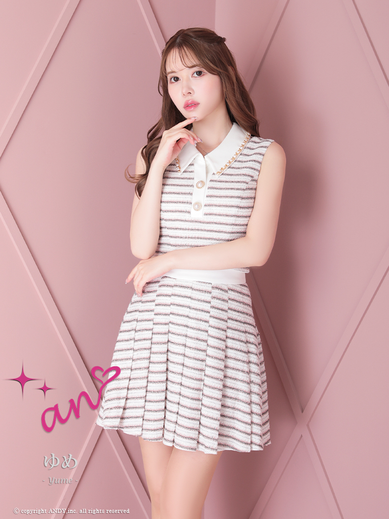 - > XSサイズあり【an/アン】ストレッチ/ ツイード/ 襟付き/ ボタン/ Aライン/ プリーツ/ セットアップ/ ミニドレス/ キャバドレス[OF05]