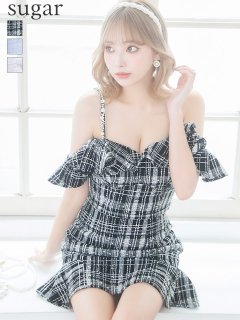 - > XSサイズあり【ROBE de FLEURS/ローブドフルール】チェックツイード/ マーメイド/ ネックリボン/ ジップ/ フリルショルダー/ ミニドレス/ キャバドレス[OF08]