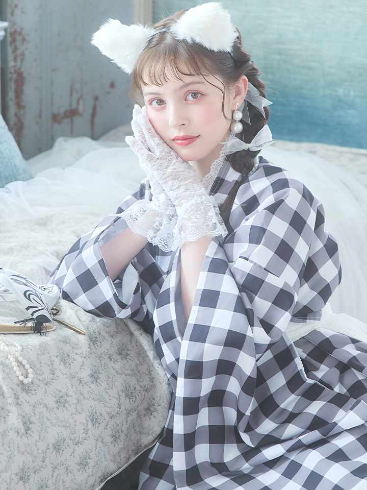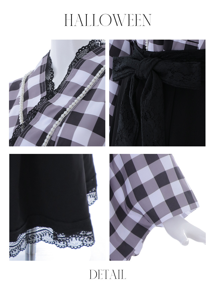 【即日発送】【ハロウィン】 ギンガム猫巫女【コスプレ5点セット】【Fサイズ/2カラー】[HC03] [HW-088-SB-dzc-23NN-1]