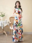 XS-Lサイズあり【ERUKEI エルケイ】Aライン/ プリント/ノースリーブ/ ワンピース/ ロングドレス / キャバドレス long[OF2]