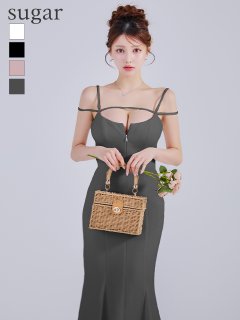 - > Lサイズあり【DEA./ディア】ショルダーリボン/ マーメイド/ ノースリーブ/ ワンカラー/ ミモレ丈/ ミディアムドレス/ キャバドレス【OF08】