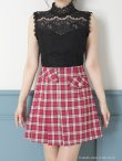 - > 【ANDY/アンディ】チェック柄/ ノースリーブ/ ハイネック/ 切替デザイン/ レース/ フレア/ ミニドレス/ キャバドレス[OF05]