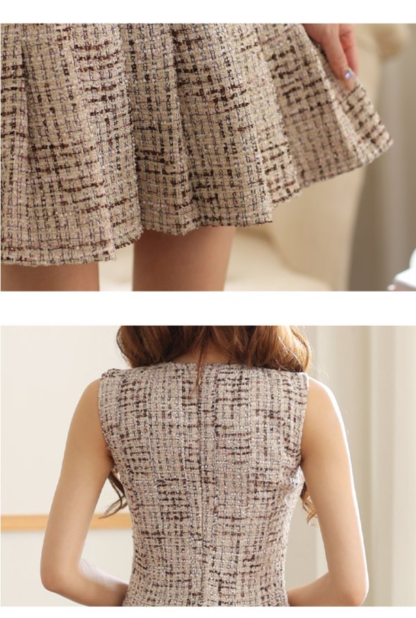- > XSサイズあり【DEA./ディア】ラメツイード/ プリーツ/ ノースリーブ/ ストレッチ/ Aライン/ ミニドレス/ キャバドレス【OF08】