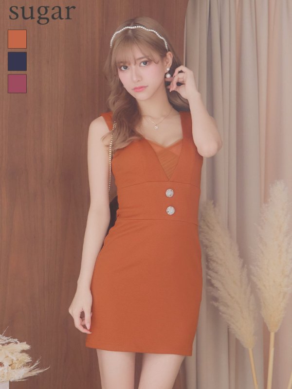 XSサイズあり【PURESS/ピュアレス】バストメッシュ/ ウエスト2ボタン/ ノースリーブ/ ワンカラー/ タイト/ ミニドレス/ キャバドレス[OF5] [PS802302-OR-S230829]