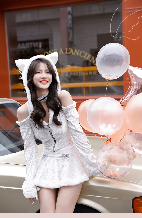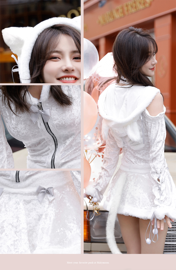 猫耳付きフードとリボンの組み合わせが可愛いキャットエンジェルコスチューム