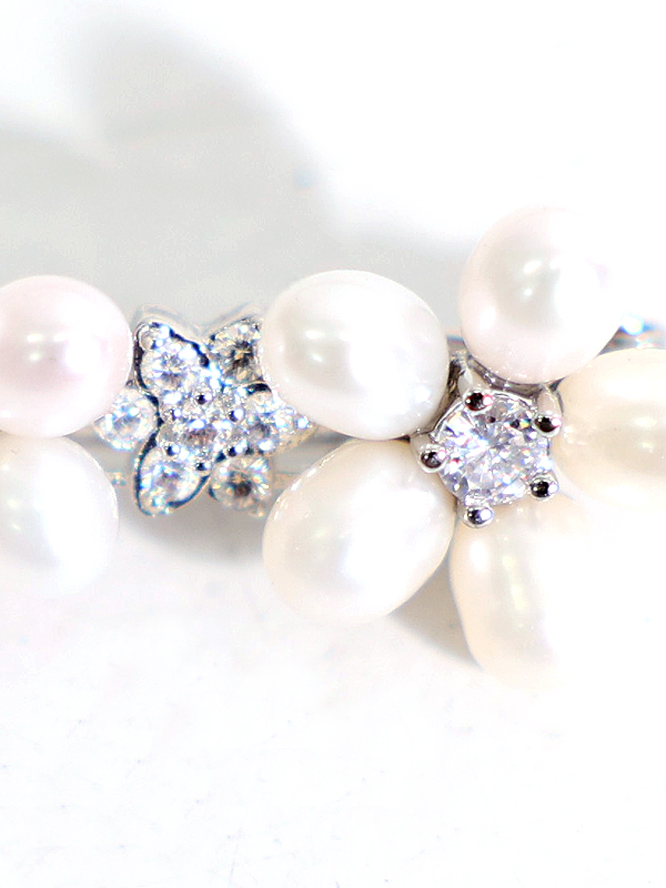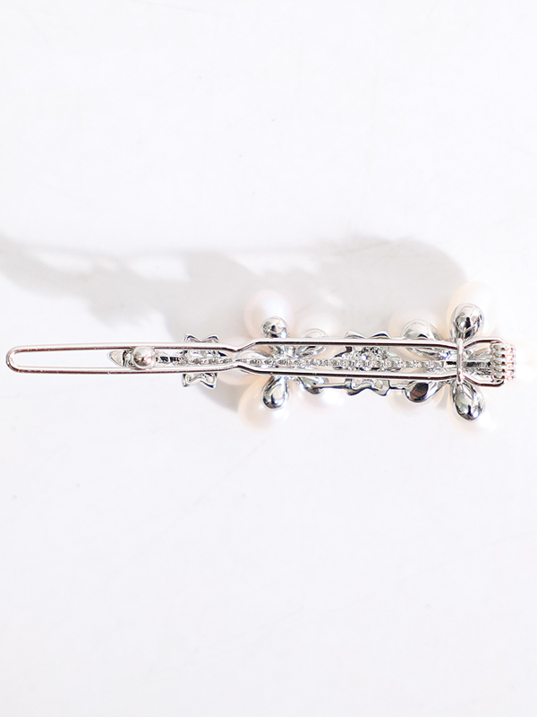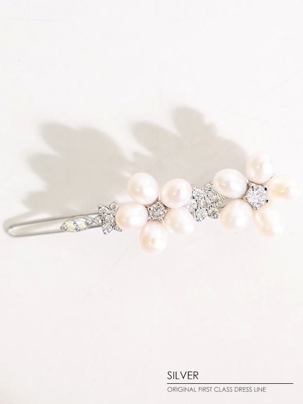 フラワーデザインをパールで施した愛らしいヘアーアクセサリー。