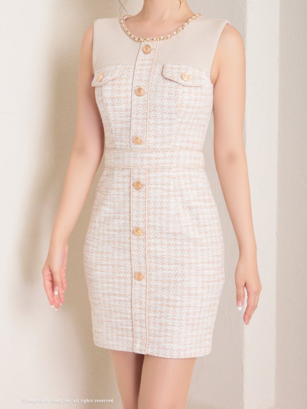 - > 【ANDY/アンディ】ツイード/ 切替デザイン/ ノースリーブ/ ボタン/ タイト/ ストレッチ/ ミニドレス/ キャバドレス[OF05]