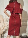 XSサイズあり【Veautt/ヴュート】【OF05】オープンショルダー/ ネックビジュー/ バックファスナー/ バックオープン/ ワンカラー/ ひざ丈/ タイト/ ミディアムドレス/ キャバドレス [VT07238-Burgundy-S230921]