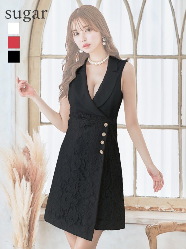 【Jessica/ジェシカ】 フラワーレース/ 襟付きデザイン/ ノースリーブ/ ウエストボタン/ Aライン/ ミ二ドレス/ キャバドレス【HC03】 [JS5301-B-S2309]