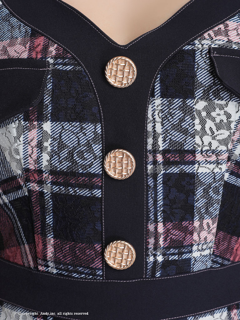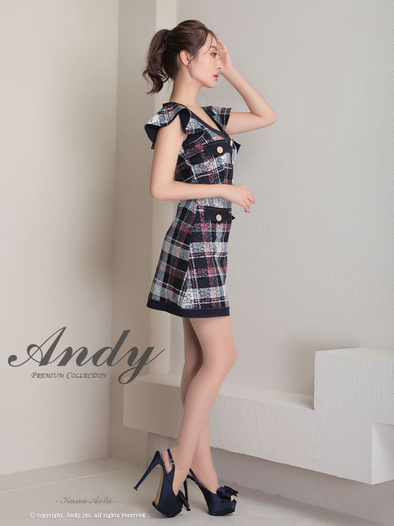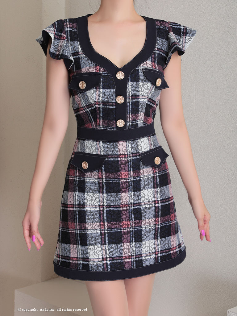 【ANDY/アンディ】チェック/ 袖フリル/ レース/ ボタン/ ワンピース/ タイト/ ミニドレス/ キャバドレス[OF05] [OK2806-RNV-2310]