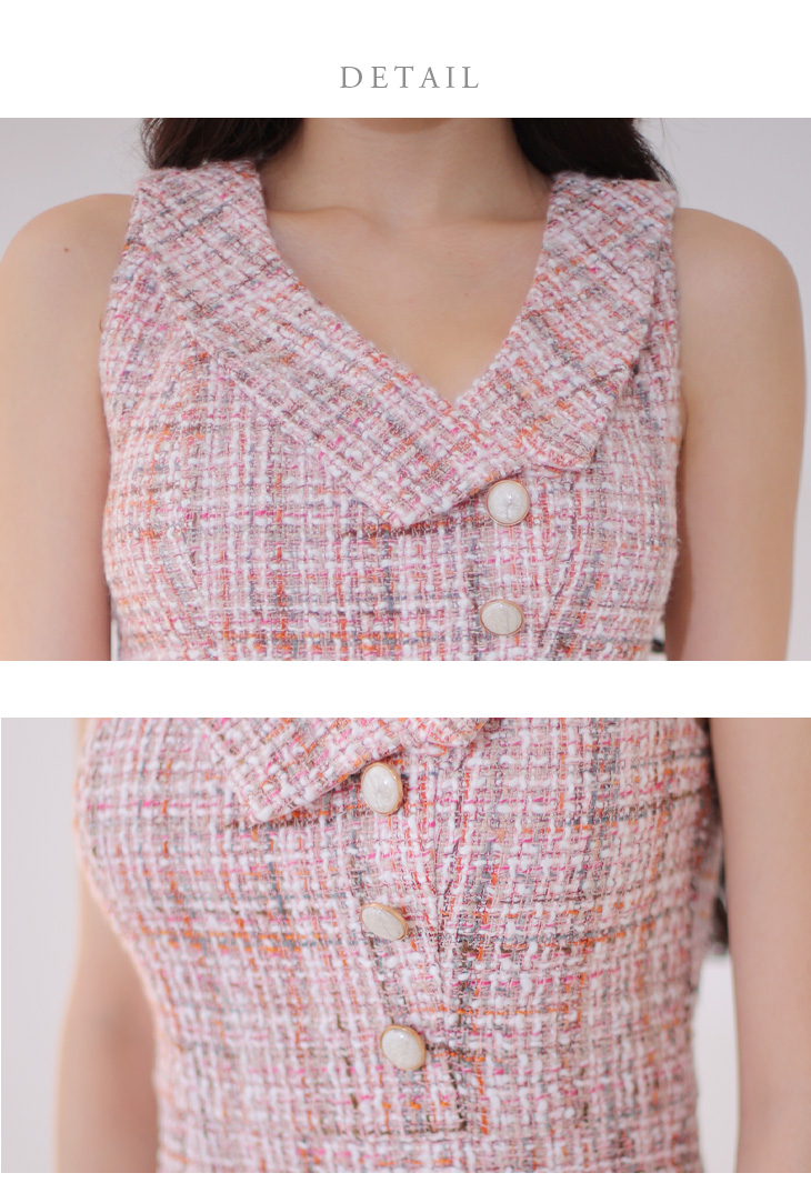 - > Lサイズあり【DEA./ディア】マーメイド/ ツイード/ ノースリーブ/ 膝丈/ 襟付き/ 裾フリル/ ワンピース/ ミディアムドレス/ キャバドレス【OF08】