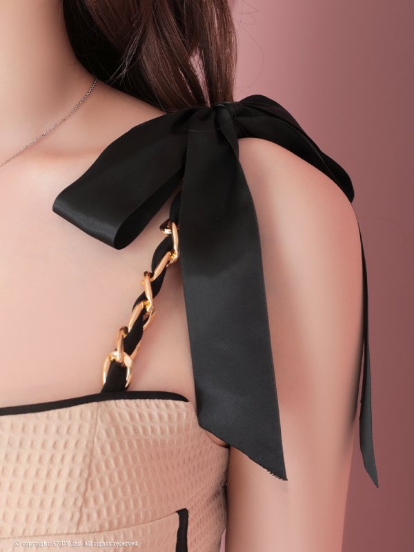 XSサイズあり【an/アン】ワッフル/ フロントジップ/ パイピング/ ショルダーリボン/ マーメイド/ セットアップ/ ツーピース/ タイト/ ミニドレス/ キャバドレス[OF05]