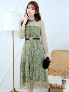 - > 【AMORA GRACE / アモーラグレース】 オケージョンドレス/ パーティードレス/ お呼ばれドレス/ 半袖/ 袖あり/ 総レース/ ハイネック/ タック/ ミディアム丈/ 膝丈/ ワンピース/ キャバドレス[OF05]