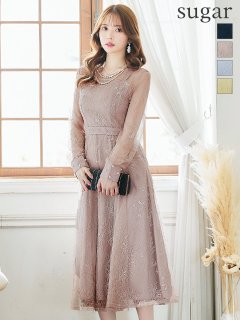 総レースがエレガントなミモレ丈ワンピースドレス♡
