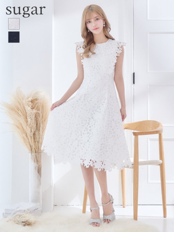 ワンカラーxケミカルレースが上品なミディアムドレス♡