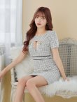 - > XS-Lサイズあり【Glossy/グロッシー】袖付き/ ツイードニット/ フロントジッパー/ タイト/ ミニドレス/ キャバドレス[OF08]