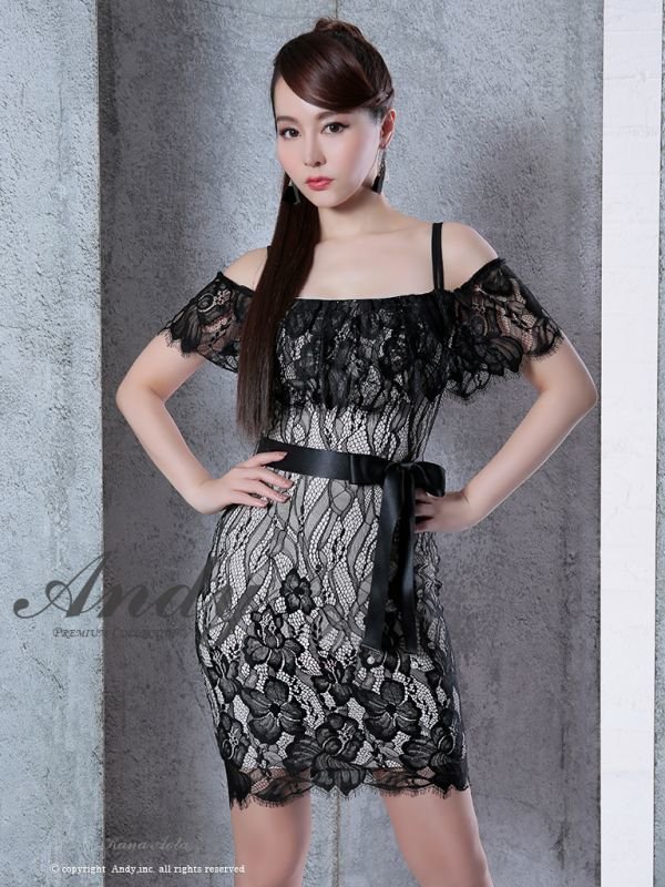 訳あり商品☆ベルトのビジュー取れ☆☆SALE☆【ANDY/アンディ】総レース/ オフショル/ リボンベルト/ タイト/キャバドレス[OF05] [BBB-OK1945-1905]