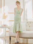 Lサイズあり【DEA./ディア】チェックレース/ マーメイド/ ノースリーブ/ Vネック/ スリット/ ミディアムドレス/ キャバドレス【OF08】 [DE2999-MI-S240112]
