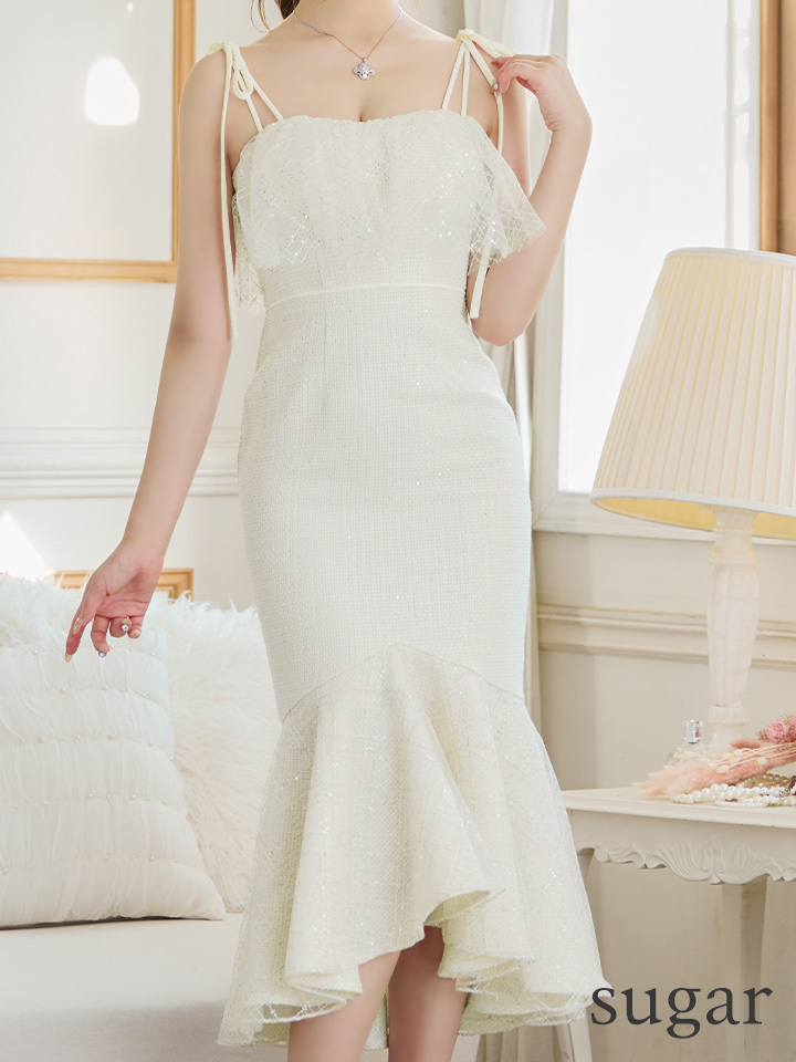 - > Lサイズあり【DEA./ディア】スプリングツイード/ マーメイド/ チェック/ キャミソール/ ミモレ丈/ ミディアムドレス/ キャバドレス[OF08]