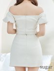 - > XSサイズあり【ROBE de FLEURS/ローブドフルール】 セットアップ/ オフショル/ ビジュー/ ウエストリボン/ パフスリーブ/ ツイード/ タイト/ ミニドレス/ キャバドレス[OF08]