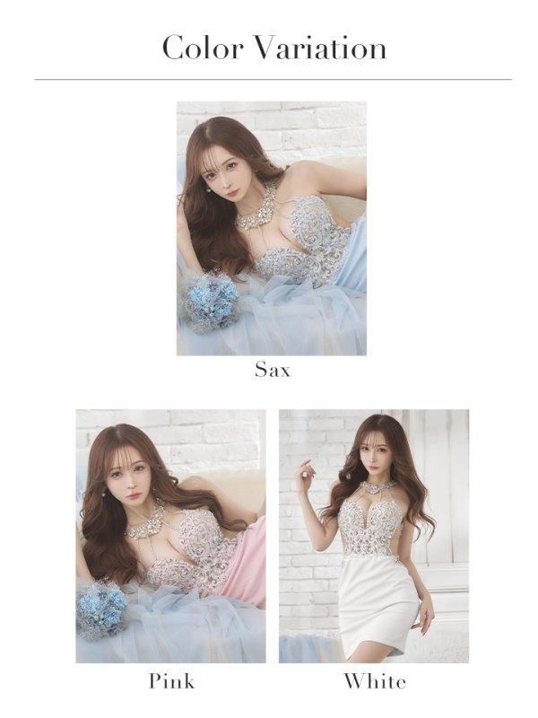 XSサイズあり【ANGEL R/エンジェルアール】アッパーフラワーレース/ デコルテビジュー/ アメスリ/ ホルター/ ストレッチ/ タイト/ ミニドレス/ キャバドレス[OF2] [AR23341-SAX-S240311]