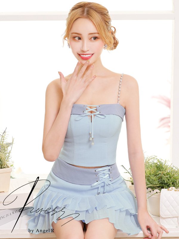 XSサイズあり【PURESS/ピュアレス】パールショルダー/ レースアップ/ マイクロミニ/ セパレート/ フレア/ ミニドレス/ キャバドレス[OF5] [PS302407-SAX-2403]