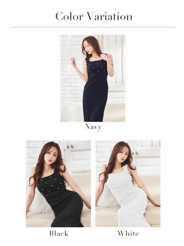 【VELIQUE/ヴェリーク】パール/ ウエストリボン/ スクエアネック/ ワンカラー/ ノースリーブ/ タイト/ ロングドレス/ キャバドレス/ long【HC02】 [BYRS-176-B-S2403]