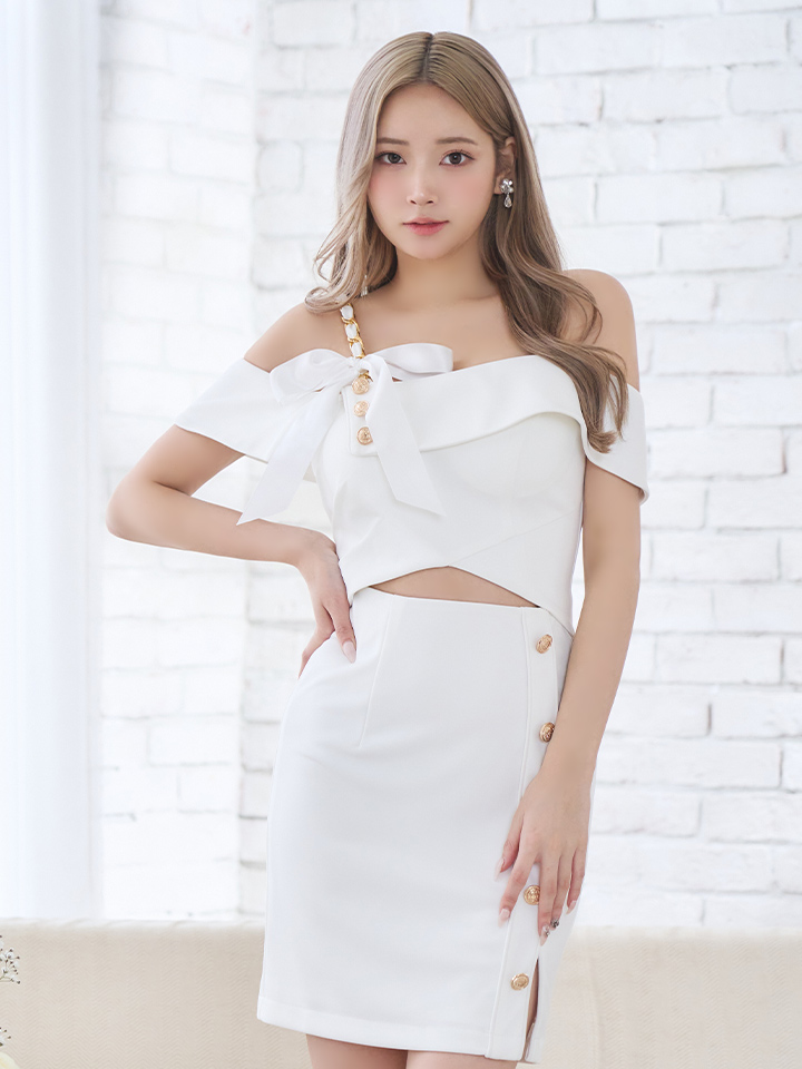 - > XSサイズあり【Andy GLAMOROUS/アンディグラマラス】ワンショルダー/ リボン/ チェーン/ オフショル/ ボタン/ カットアウト/ タイト/ ミニドレス/ キャバドレス[OF05]